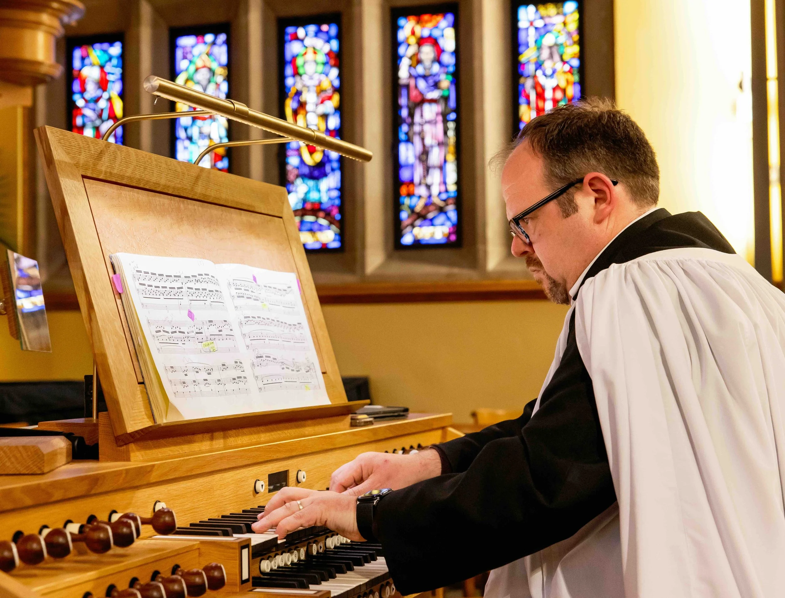 In service to the wider church, Ben has served as course manager for the Royal School of Church Music (RSCM) Washington D.C. Course for Advanced Choristers, taught with the Potomac Organ Institute, and is past Dean of the Northern Virginia Chapter of the American Guild of Organists. He is a frequent music ministry consultant for churches and dioceses on organ projects and music ministry development. He has served as Adjunct Professor of Church Music at Virginia Theological Seminary.